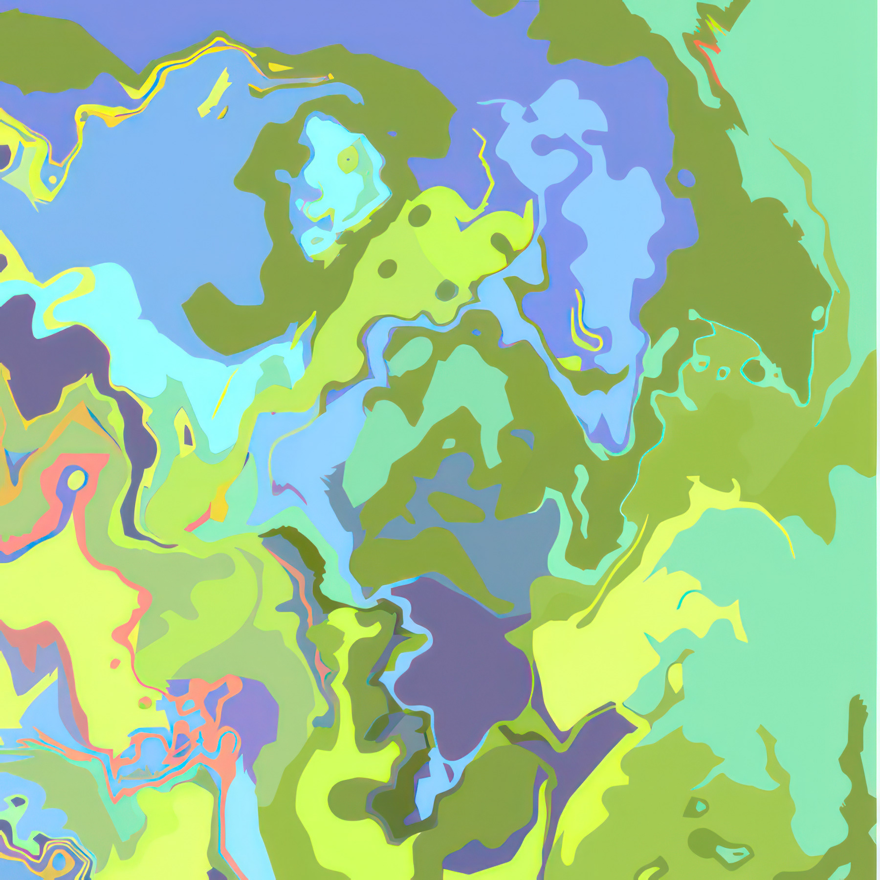 This is an intriguing image both in terms of color and the tiny shapes inside the whole. Abstract though it is, people try to find recognizable shapes, especially faces, in order to have a point of reference. I see a chimpanzee, Miss Piggy and a rabbit. Good luck.