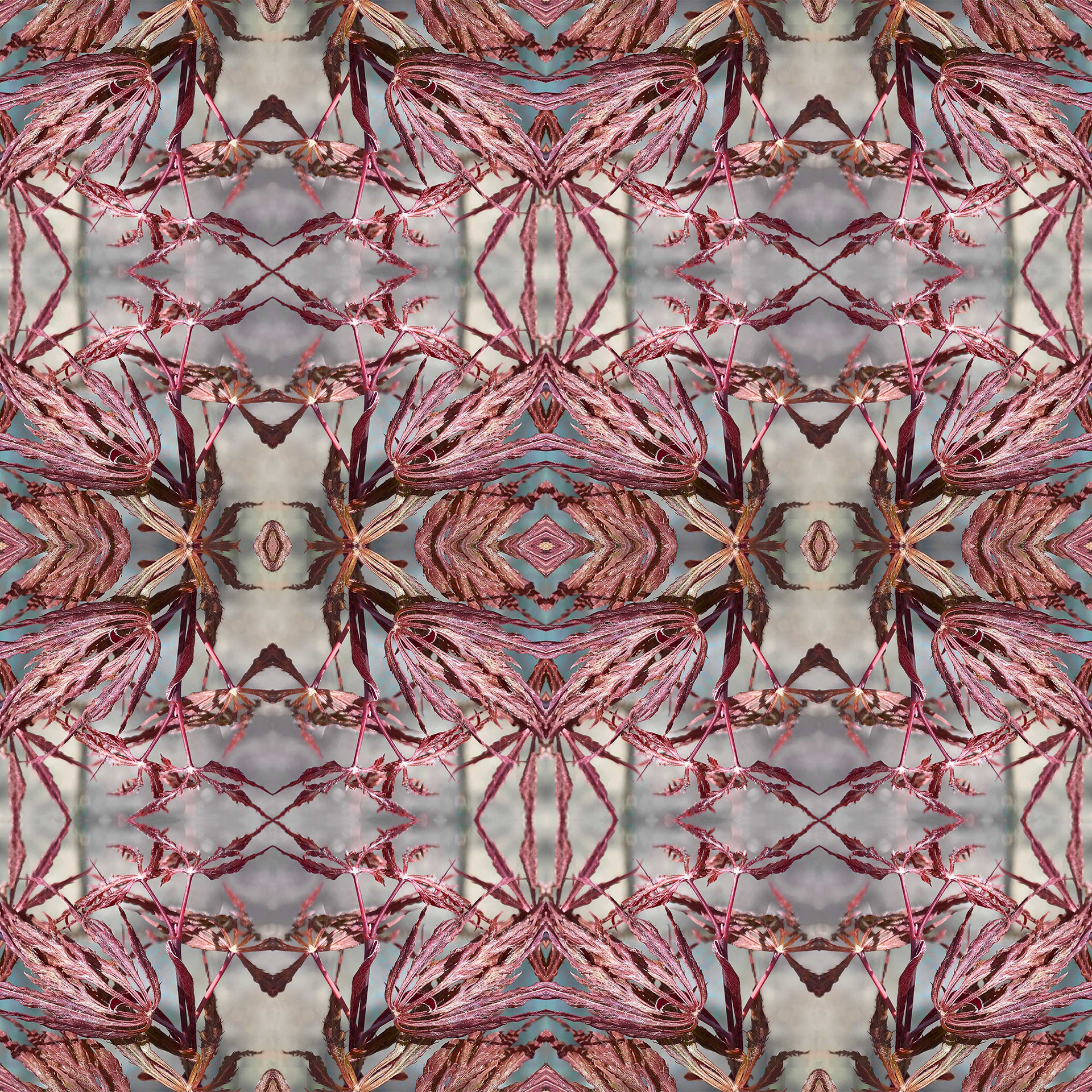 THE NIPON COLLECTION... features highly stylized arrangements of Japanese red maple leaves. A kaleidoscopic effect set off by an out of focus, neutral, mottled background.