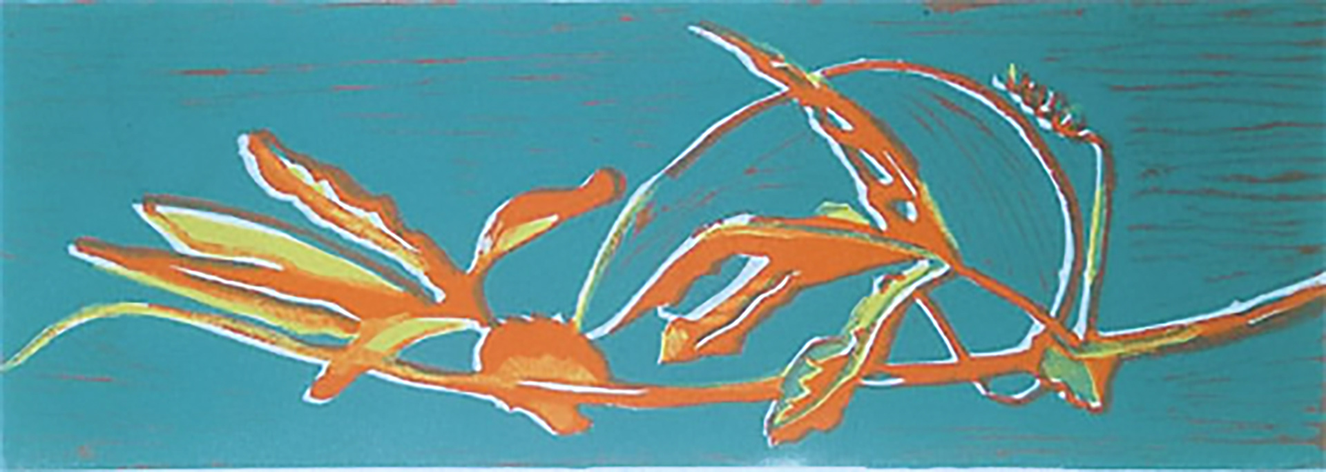 E Gaube, Passionflower Vine, linocut, 4.25x12in, 2005