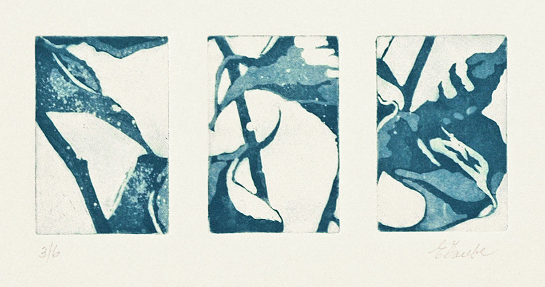 E Gaube, Pods Triptych, 2/6, aquatint etching, 3x7in, 2006