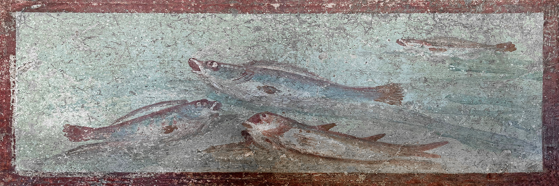 E Gaube, Pompeii Fish Fresco 2, photography, 4x12in, 2024