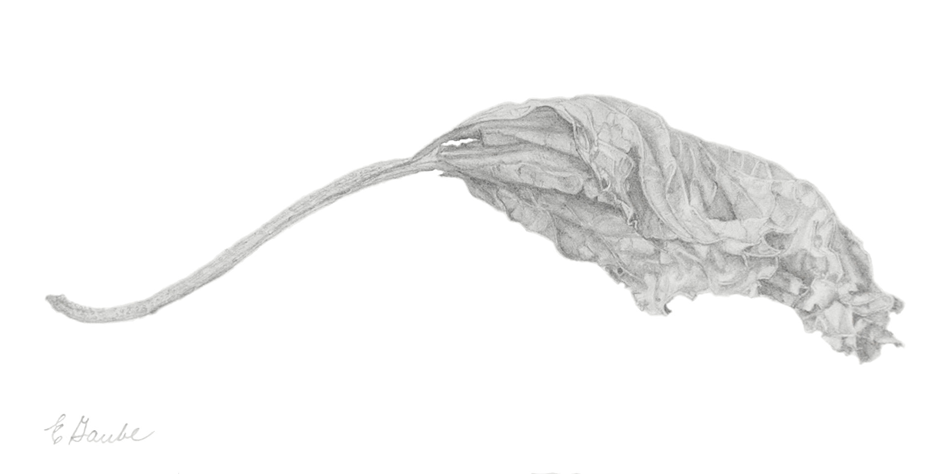 E Gaube, Sunflower Leaf 2, graphite on paper, 6 x 8in (15.24 x 20.32cm), 2013